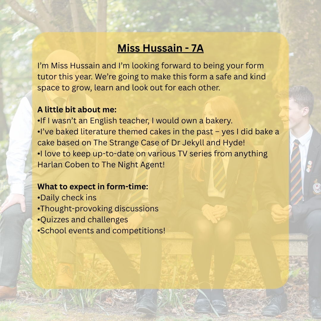 At the heart of each student’s journey at our school is their Form Tutor, a key figure who plays an essential role in both their academic and personal development. From the very first day in Year 7 through to the end of Year 11, students will have the support and guidance of the same dedicated Form Tutor. This consistency helps build strong, trusting relationships and ensures that every student is known, valued, and supported throughout their time with us. Form Tutors are the first point of contact for students and parents alike, offering daily support, encouragement, and a familiar face to turn to. They work closely with subject teachers and pastoral staff to help each student thrive and make the most of their school experience.