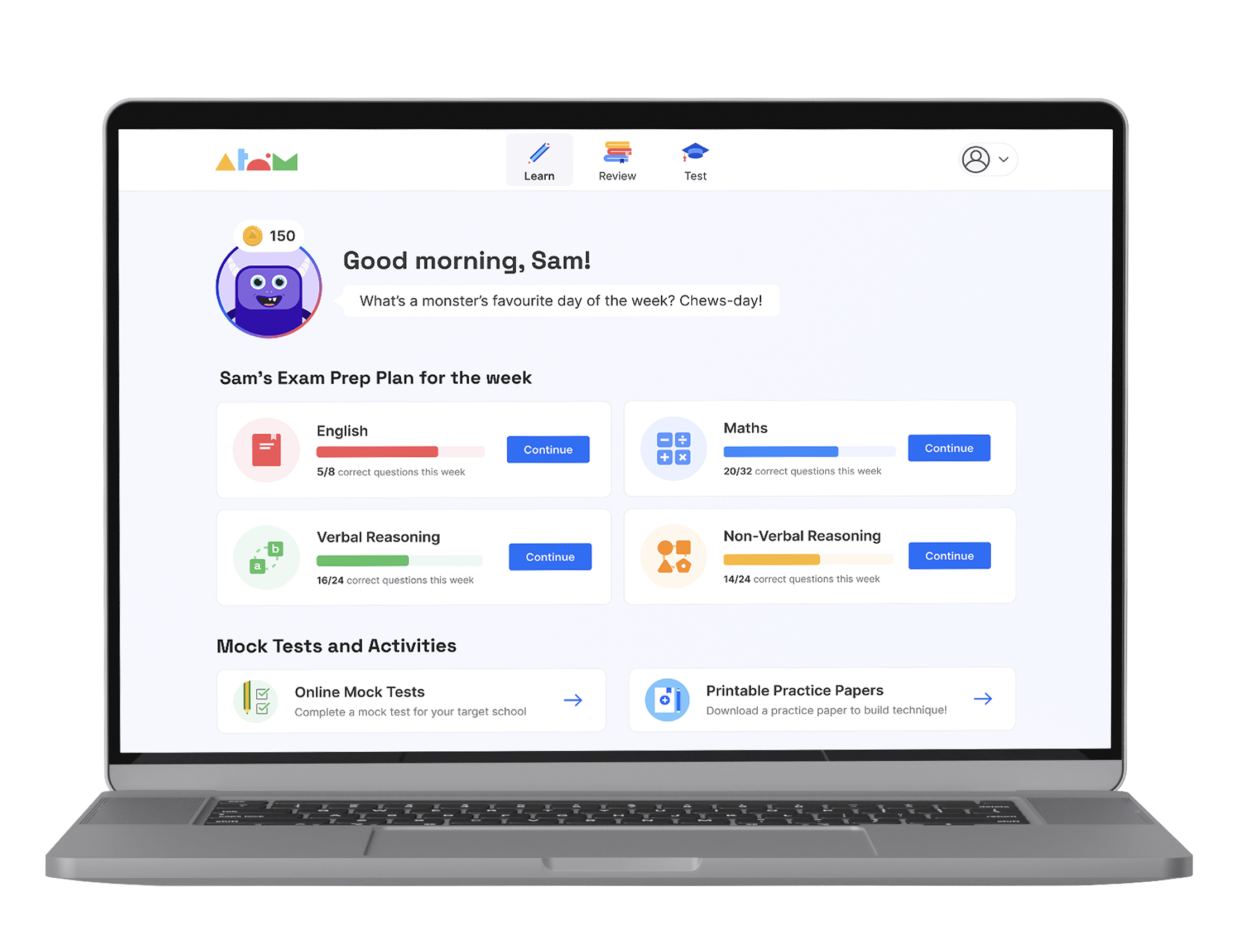 This programme is designed to help children get familiar with the type of questions they may see on the 11+, and build exam technique and confidence. They’ll be able to access KS2 and 11+ practice questions, learning resources, and practice papers through their Atom Home account.