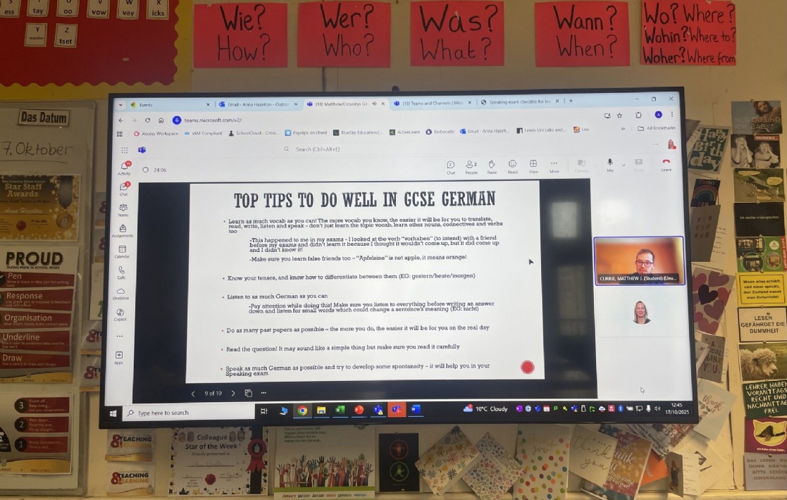 Last week, our German students had the pleasure of hearing from ex-student Matthew Currie, who beamed in live from Austria!