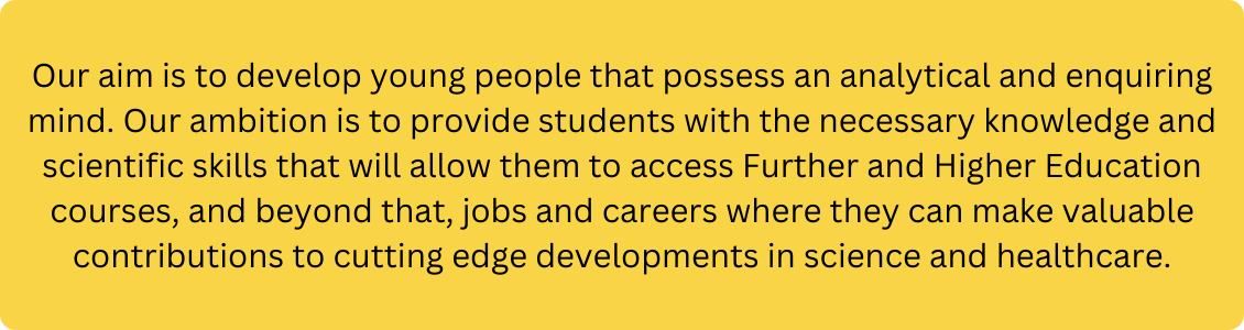 Chemistry is a deep and complex subject; thus our curriculum has been designed in a spiral manner with clear purpose, providing students with many opportunities to revisit learning at regular intervals throughout the different year groups aiding the memorising of facts, chemical formulae and all other aspects of this truly fascinating subject.